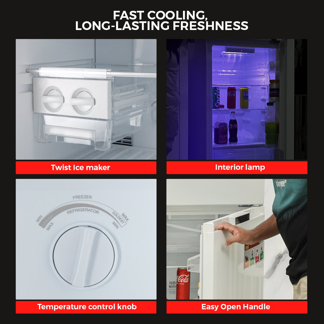 Geepas Double Door Total No-Frost Refrigerator- GRF2708WPN-U/ 270L Gross/ 200L Net Capacity, Quick Cooling, Low Noise Operation/ Equipped with Glass Shelves, Chrome Bottle Holder is backordered and will ship as soon as it is back in stock.