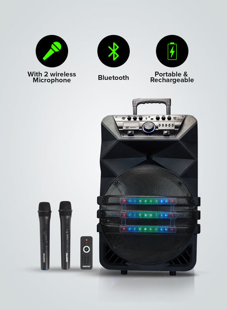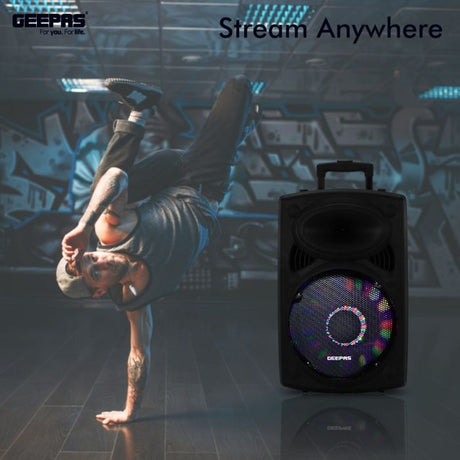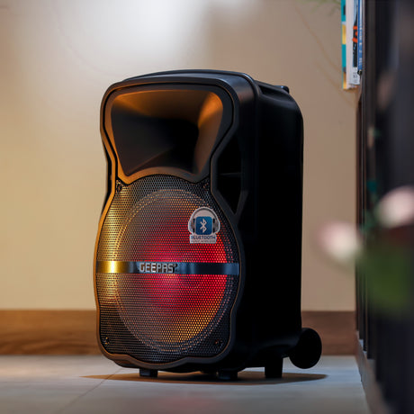 Geepas Rechargeable Speaker GMS11158 | 60000W PMPO | Bluetooth, Mic, RGB Light