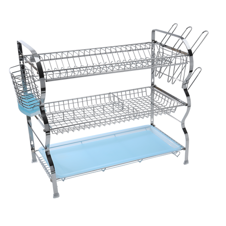 Royalford RF2569 3 Layer Dish Rack is made from durable iron with a polished finish| featuring three spacious tiers, removable drip trays and side utensil holders.