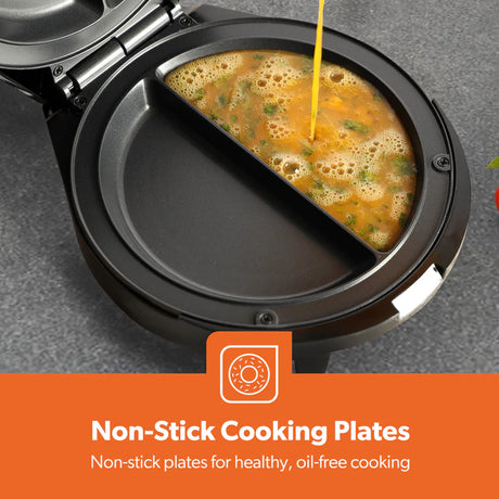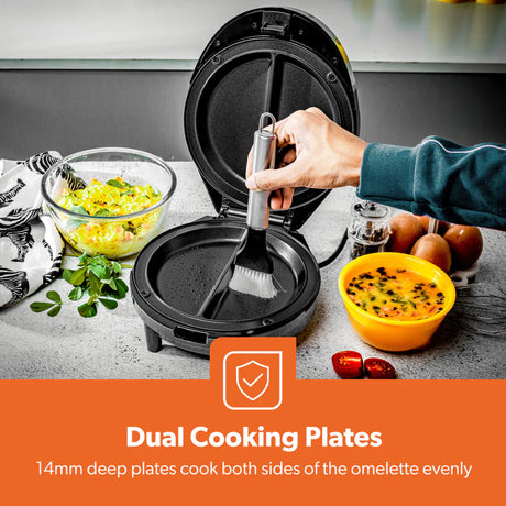 Geepas Omelette Maker GOM36535UK | Non-Stick 185mm Plate| 1000W Power | Green & Red Indicator Lights| Automatic Temperature Control| Anti-Slip Feet | 2 Years Warranty
