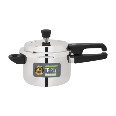 AED 90.00Unit price /UnavailableIn stock (2591 units) Cool Touch Handles & Safety Valves Aluminium Pressure Cooker RF357PC5 Royalford