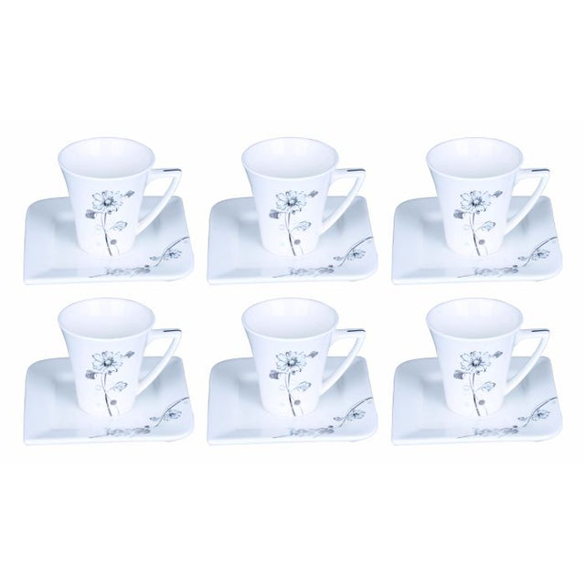 12PCS Bone China Square Cup & Saucer Set Royalford RF4309