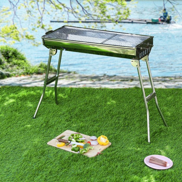 Barbecue Stand with Grill, Stainless Steel Grill, RF10362 | Foldable & Portable Design for Easy Transport & Storage | Used for Camping, Outdoor Pool Party Etc