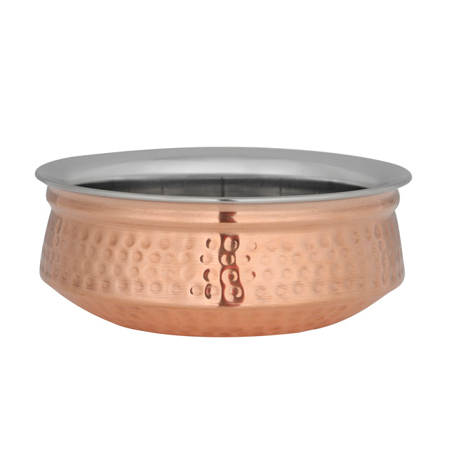 Cooper Steel Serving Handi, RF10393 | Copper Stainless Steel Hammered Handi | Indian Serving Bowl | Indian Dishes Serve ware for Vegetable and Curries