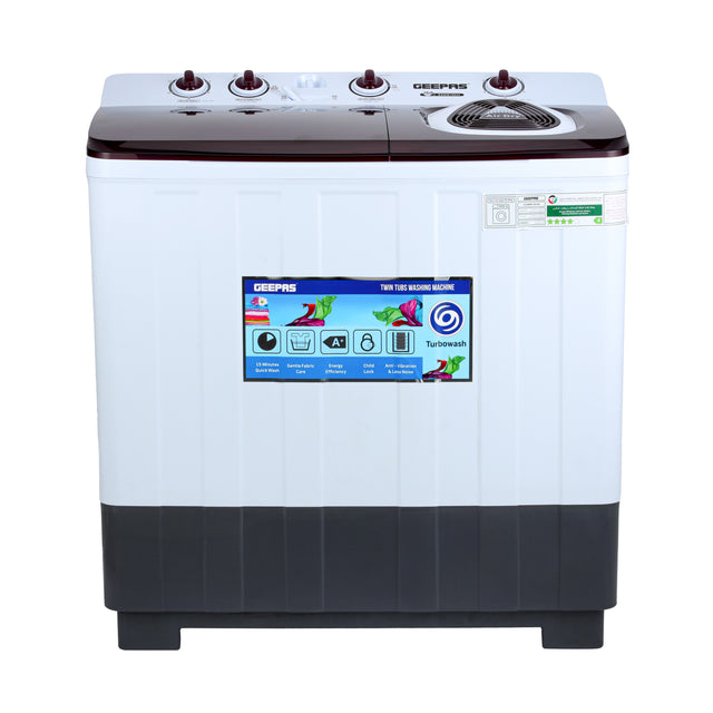 Geepas 15.0 kg Twin Tub Semi-Automatic Washing Machine- GSWM18044/ Equipped with Strong Pulsator and Air Dry Spinning Function/ Efficient Performance and Classic Design