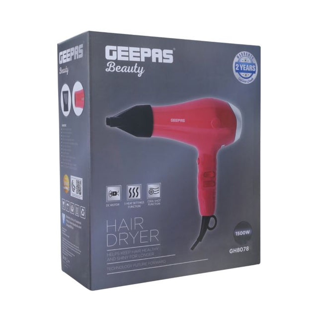 Geepas 1500W Powerful Ionic Hair Dryer | 3-Speed & 3 Temperature Settings | Salon Quality with Cool Shot Function For Frizz-Free Shine | Portable Elegant Professional Concentrator - 2 Years Warranty