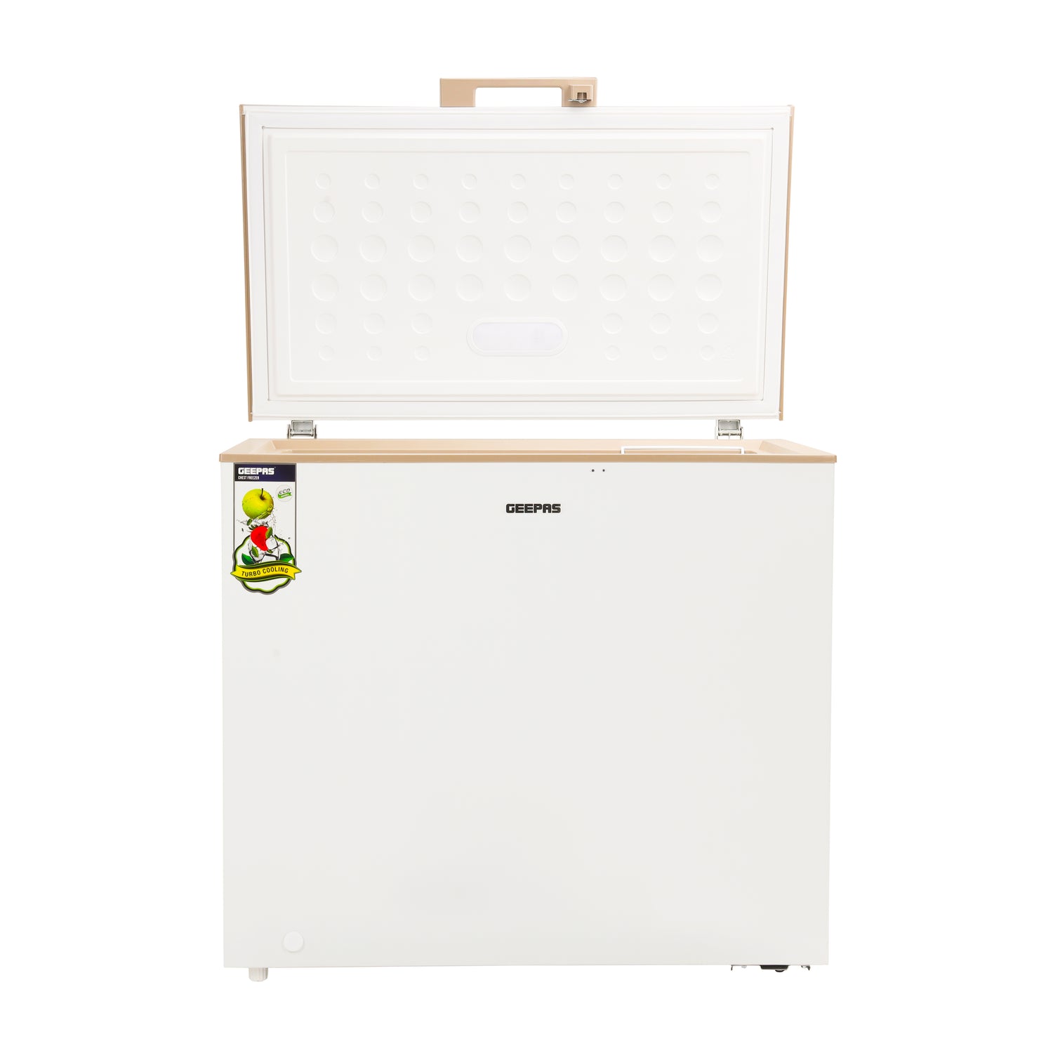 Geepas GCF2506WAH Chest Freezer | 250L High-Efficiency Deep Freezer | LED Stylish Light | Adjustable Thermostat | Lock & Key | 1 Food Basket | 1 Year Warranty