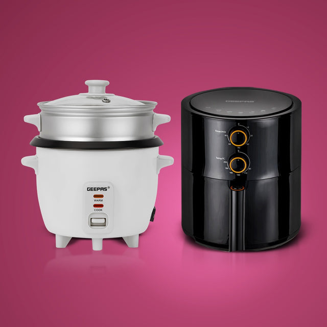 Geepas Home Essentials Combo: Geepas 4 liter air fryer and Geepas 0.6 Liter Rice Cooker