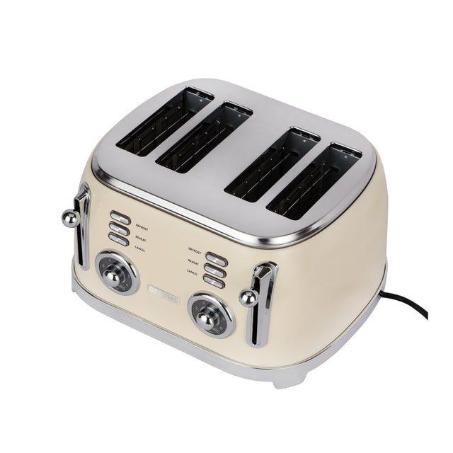 Geepas 4 Slice Toaster GBT36564UK-CR | 1500W Powerful Toaster with 6 Adjustable Browning Levels, Defrost, Reheat & Cancel Functions, Removable Crumb Tray, Cord Storage
