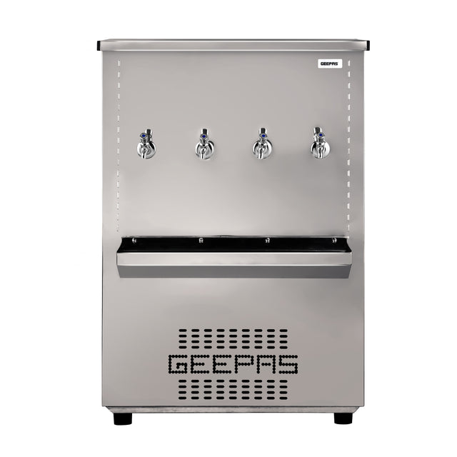Geepas 100 L Stainless Steel Water Cooler- GWCL8842| 4 taps and 65 Gallon Capacity| Temperature Range 7-Degrees Celsius| Air Cooling Condenser Cooling Type|