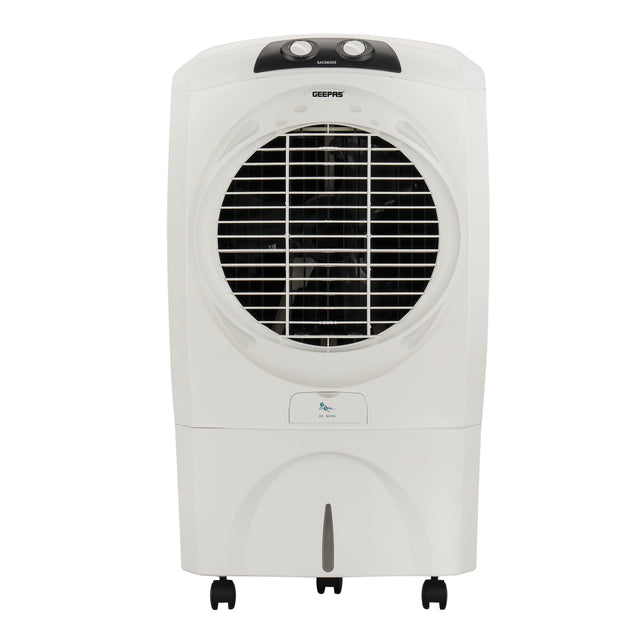 Geepas 70 liter Air Cooler- GAC9602/ Equipped with Honeycomb Pads, Specially Designed Grill, Cool Flow Dispenser/ Multidirectional Wheels, 2 Years Warranty, White