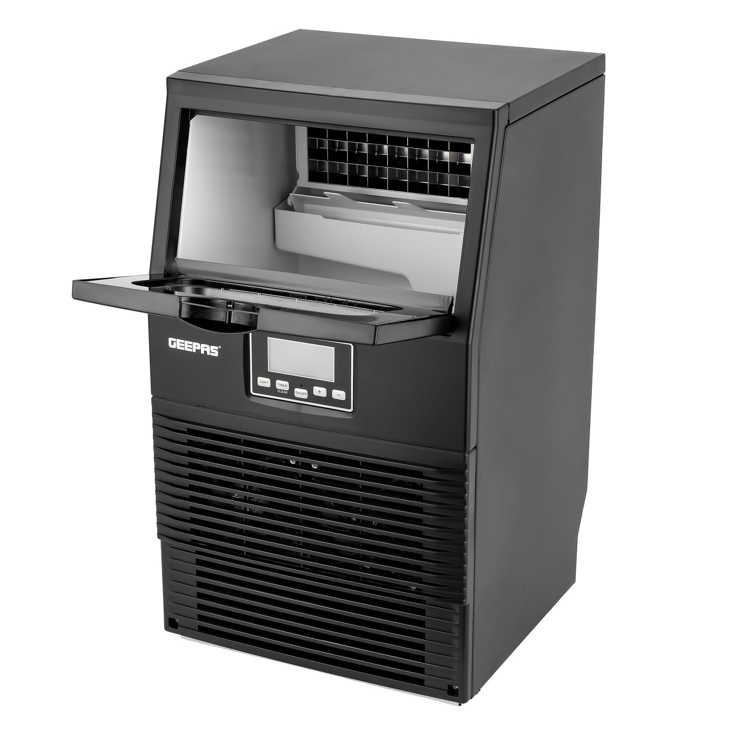 The Geepas Automatic Ice Maker GIM63061 is a high-performance ice production solution designed for homes, offices, cafés, restaurants, and small commercial spaces. With a sleek, compact body and powerful internal compressor, this unit delivers fast and reliable ice making whenever you need it. Capable of producing up to 30kg of ice in 24 hours, the ice maker can create ice in as little as 12–20 minutes per cycle, making it ideal for high-demand usage. It features an automatic shut-off system that activates when the water tank is empty or the ice container is full, ensuring safe and energy-efficient operation. The machine includes a 1L water container and a large 4kg / 10L ice storage bin, producing 32 square ice cubes per cycle. Designed for convenience, it comes with a drain plug for easy water removal, a digital control panel, and essential accessories for effortless maintenance. Powered by an eco-friendly gas compressor, this ice maker offers reliable cooling with reduced environmental impact.