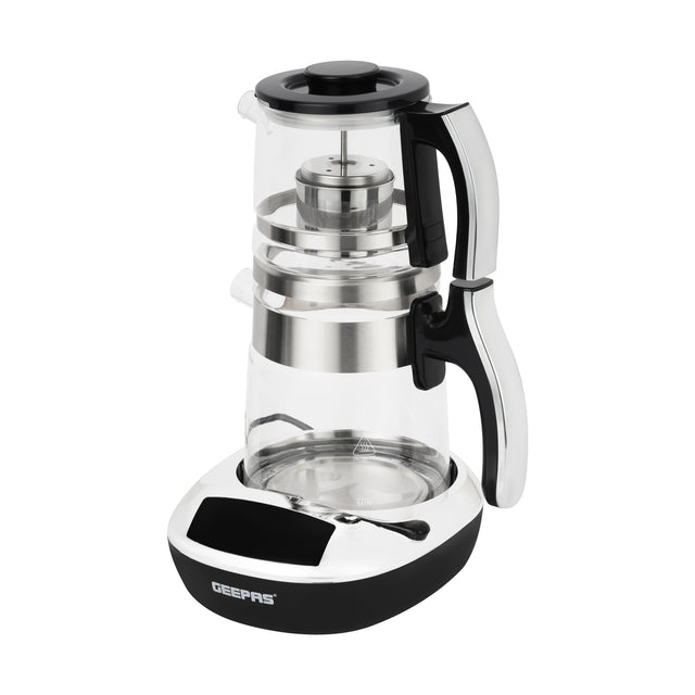 Geepas Digital Tea Maker GTM38079 | 1.8L kettle + 0.9L teapot, smart touch control, durable glass body, stainless steel heater, overheating protection, 1500W power