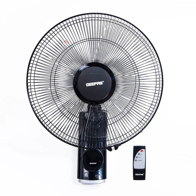 Geepas GF9479 16-Inch Wall Fan with Remote Control Features | 60 W Power | 3-speed options | 12-hour timer | wide oscillation | powerful copper motor | 2-year warranty