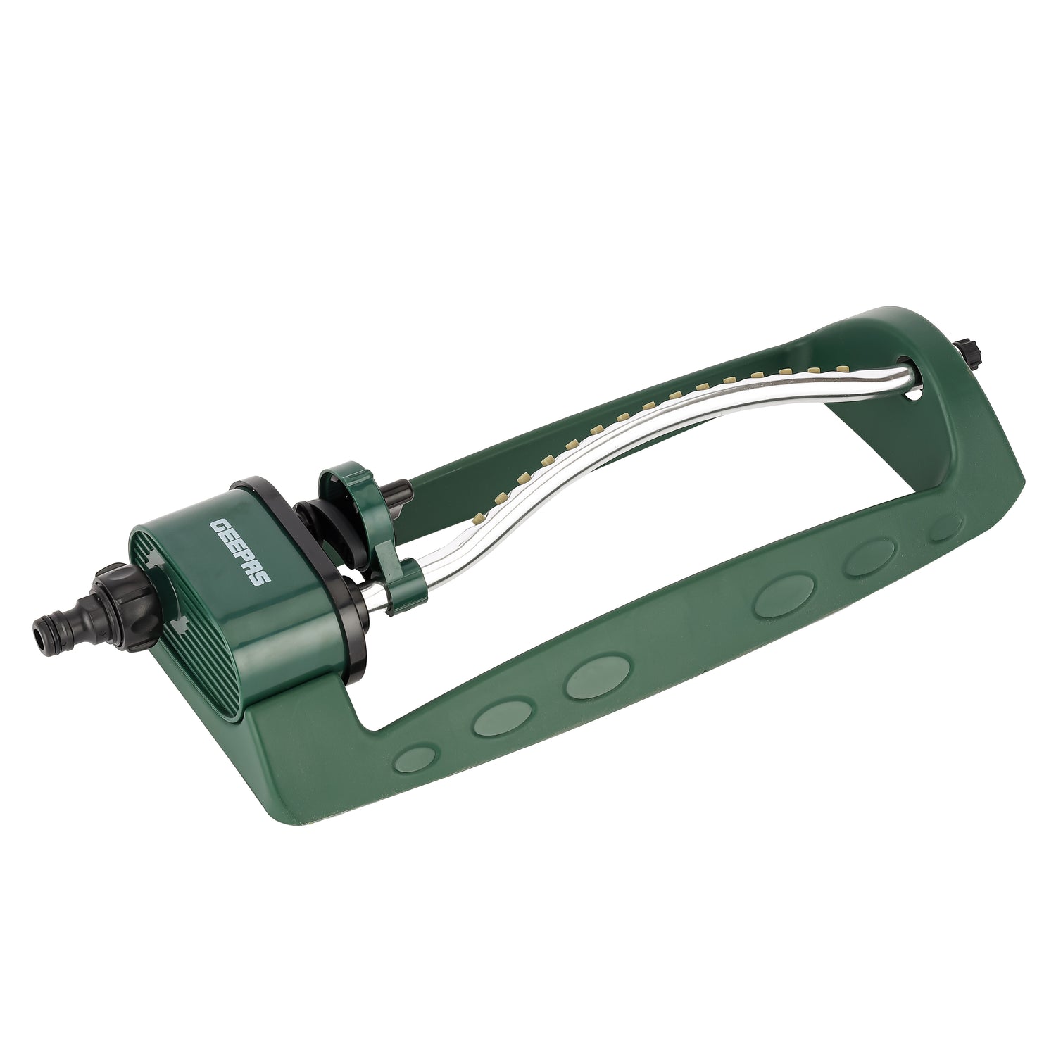 The Geepas GGP61221 Oscillating Sprinkler is designed for efficient irrigation of lawns, gardens, agricultural crops, and landscapes. Built with high-quality ABS + plastic, it is durable, stable, and easy to move or store. Featuring 12 built-in spray nozzles and 360° auto rotation, it ensures wide coverage with adjustable spray arms to meet different irrigation ranges. With a working pressure of 2.5 bar to 4 bar, this sprinkler is ideal for home gardens, golf courses, and large outdoor areas. Its forest green finish blends naturally with outdoor environments, while the adjustable angle function ensures targeted watering with maximum efficiency.