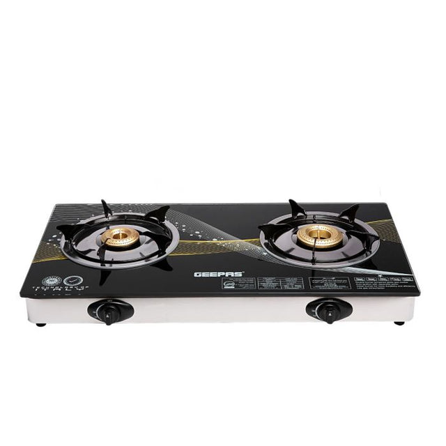Geepas GK6879 Stainless Steel Gas Cooker | 2 Burners | Auto Piezo Ignition | Flame Failure Safety | 5.4KW Power |Low Gas Consumption | Save 60% Energy |2 Years Warranty