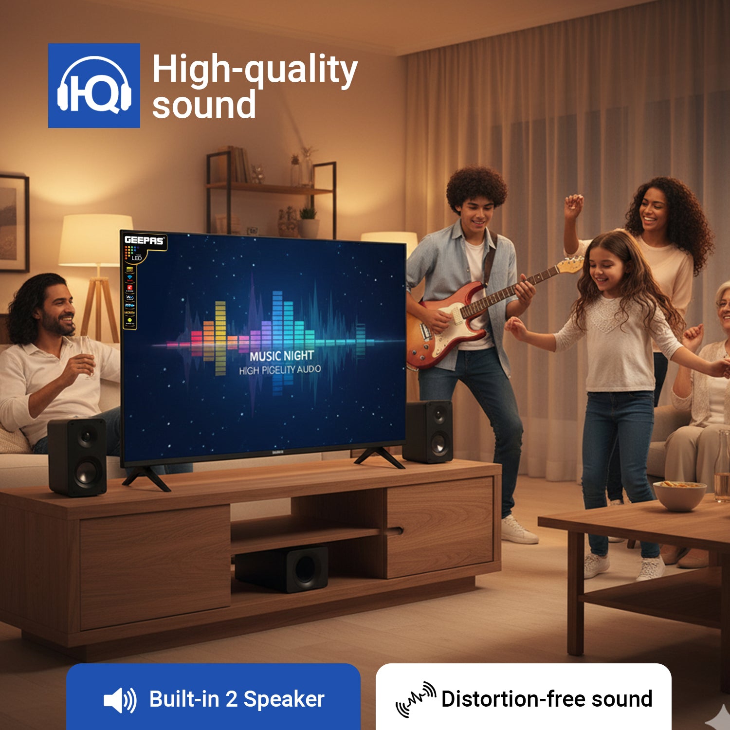 Experience cinematic viewing at home with the Geepas GLED5023SXUHD 50-Inch Ultra HD Smart LED TV. Featuring a 4K UHD resolution (3840x2160) and a frameless slim design, this TV delivers immersive visuals with exceptional clarity and detail. The Smart TV platform gives you access to popular apps like YouTube, Netflix, Amazon Prime Video, and more, letting you enjoy endless entertainment. With HQ Sound and 2x8W audio output, enjoy crystal-clear audio that complements the stunning picture quality. The TV’s HDMI and USB connectivity allow you to connect multiple devices, while its energy-saving mode ensures efficient performance. Designed for modern homes, it’s a perfect blend of smart features, sleek aesthetics, and superior picture quality.