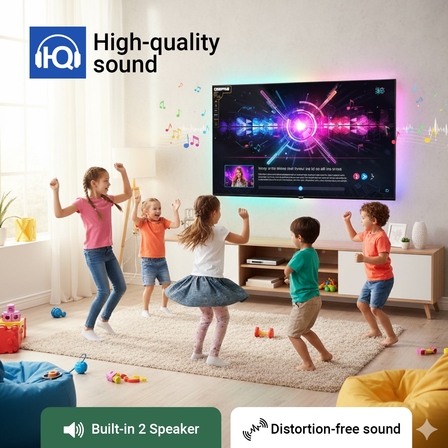 Bring cinematic brilliance to your home with the Geepas GLED5508SFHD 55-Inch Ultra HD Smart LED TV, designed to deliver stunning 4K clarity and seamless smart functionality. Its frameless, slim LED design enhances your living space with a modern, elegant look, while the Android operating system gives you easy access to YouTube, Netflix, Prime Video, and more. Featuring 3840×2160 4K resolution, the TV offers crisp detail, vibrant color accuracy, and smooth motion with Full Color Optimizer and HQ Sound technology for an immersive experience. Multiple connectivity options including 3 HDMI, 2 USB, and AV IN ports make it easy to connect gaming consoles, sound systems, and external drives. With long-lasting LED backlight and energy-efficient operation, this TV blends premium quality, smart performance, and style—perfect for your home entertainment setup.