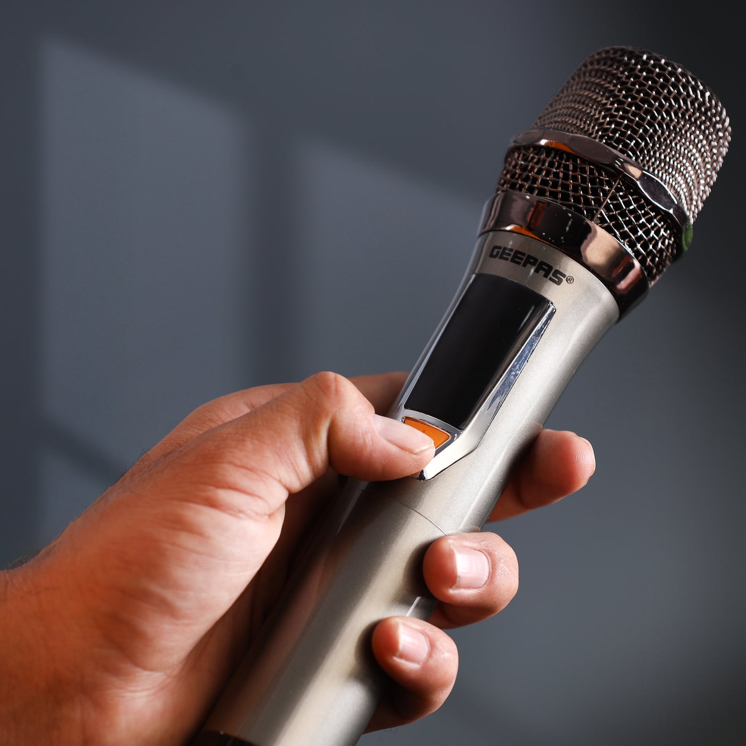Experience crystal-clear audio, long-distance transmission, and professional-level performance with the Geepas GMP15015 UHF Wireless Microphone System. Designed for events, stage performances, seminars, karaoke, and professional audio setups, this dual-microphone system ensures stable UHF connectivity, sharp sensitivity, and high-quality sound output. With 100 selectable channels, a long-lasting lithium battery, and a strong anti-interference UHF frequency range, this wireless system delivers flawless voice clarity for any occasion.