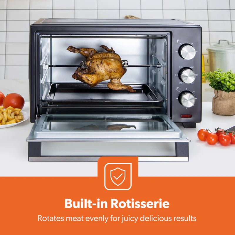 Geepas GO34049 25L Electric Oven with Rotisserie | 1600W Compact & Powerful Table Top Oven| Adjustable Temperature & Timer Control| Easy to Clean Design| 2 Years Warranty