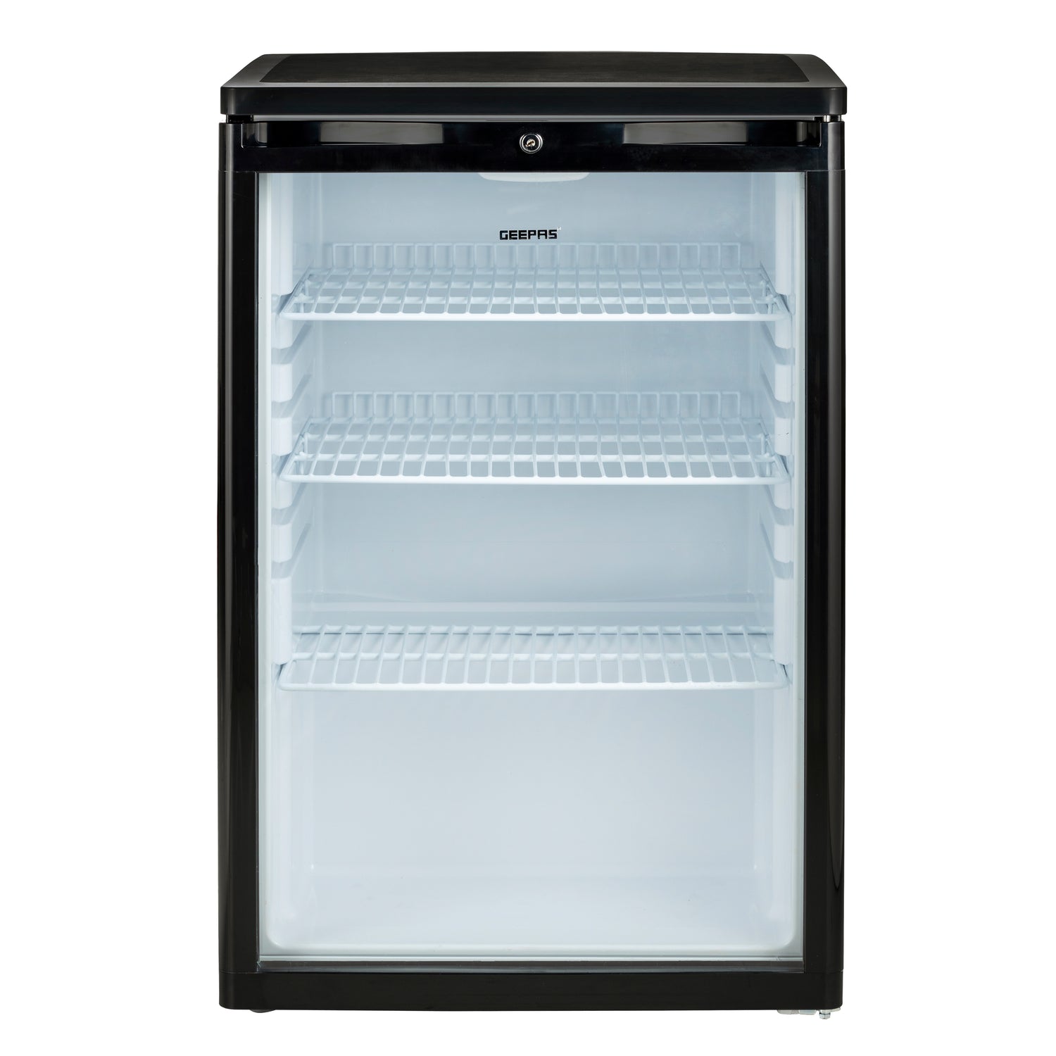 Geepas GSC1601BE Showcase Chiller 165L | Beverage Cooler with R600a Refrigerant | Lock & Key| Low Noise| Adjustable Temperature| Energy Efficient Design| 1 Year Warranty