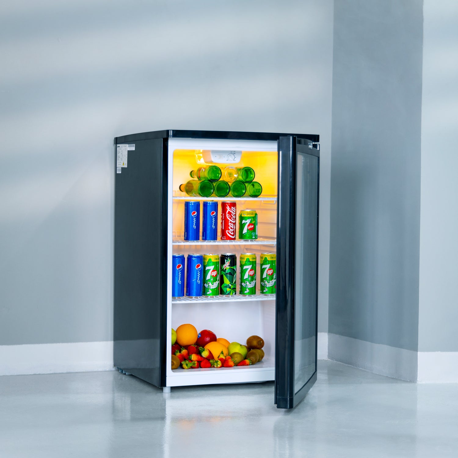 Keep your beverages perfectly chilled and attractively displayed with the Geepas GSC1601BE Showcase Chiller. Designed with environment-friendly R600a refrigerant and energy-efficient technology, this 165-liter single-door chiller offers outstanding cooling performance while minimizing environmental impact. Its adjustable temperature control ensures optimal storage conditions for all types of beverages, while the soft interior lights beautifully illuminate your drinks, making it ideal for cafés, restaurants, and home bars. The lock and key feature provides added security, and the low-noise design ensures smooth operation without any disturbance. Built with a high-efficient compressor and an outside condenser, the Geepas Showcase Chiller delivers reliable, long-lasting cooling performance with a sleek, modern black finish that enhances any setting.