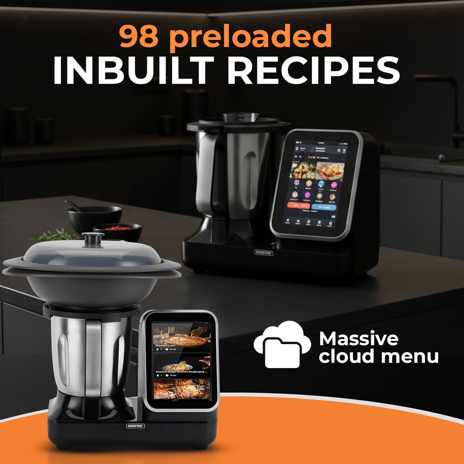 Upgrade your kitchen with the Geepas GSMC35059 Smart Multi-Cooker, an all-in-one intelligent cooking solution designed for modern homes. Equipped with a powerful AC motor, this smart appliance delivers consistent performance for blending, kneading, chopping, stirring, and cooking a wide variety of dishes effortlessly. The 8-inch touchscreen display offers an intuitive user experience, giving you access to 98+ built-in recipes supported by a smart cloud library for endless meal inspiration. With precision heating from 30°C to 120°C and adjustable speed control up to 4000 RPM, you can achieve perfect cooking results every time. Featuring 12 versatile functions, including soy milk maker, rice cooker, frying wok, sauce maker, blender, whisk, kneader, and food processor, this smart multi-cooker replaces multiple kitchen appliances in one compact unit. Designed for convenience, efficiency, and creativity, the Geepas Smart Multi-Cooker makes cooking faster, smarter, and more enjoyable.