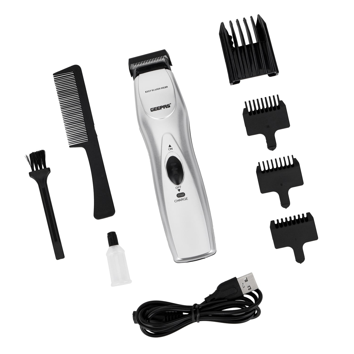 Get a clean, stylish trim every time with the Geepas GTR34N Rechargeable Hair Trimmer. Designed for precision and durability, it features a chromium steel blade that ensures smooth performance and long-lasting sharpness. With up to 60 minutes of continuous use on a single charge, this trimmer is ideal for quick grooming sessions or complete styling routines. The 5-position attachment comb allows you to choose the perfect length for your haircut or beard trim. Compact, rechargeable, and easy to maintain, it comes with multiple accessories including blending combs, a moustache comb, and a cleaning brush—everything you need for a professional grooming experience at home.