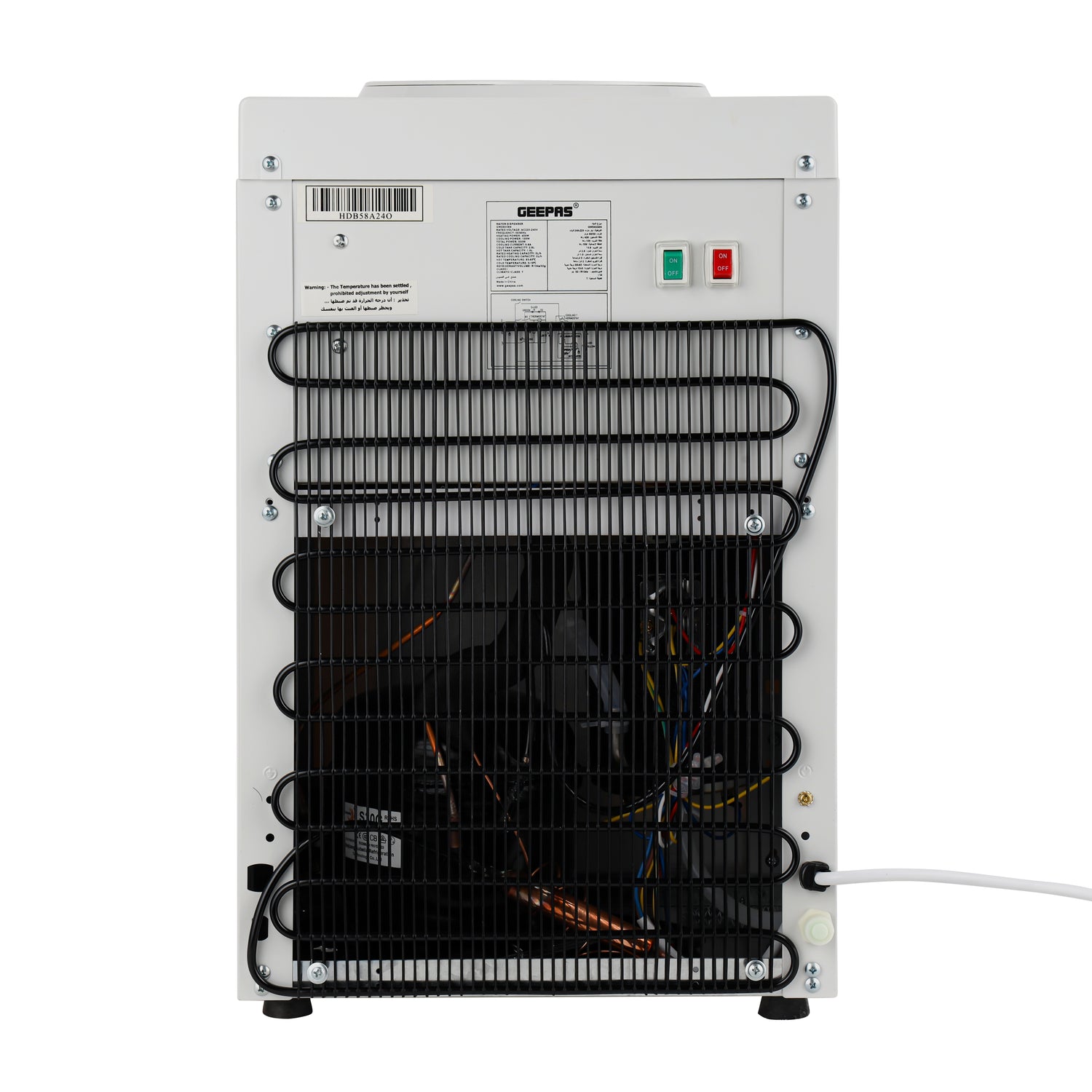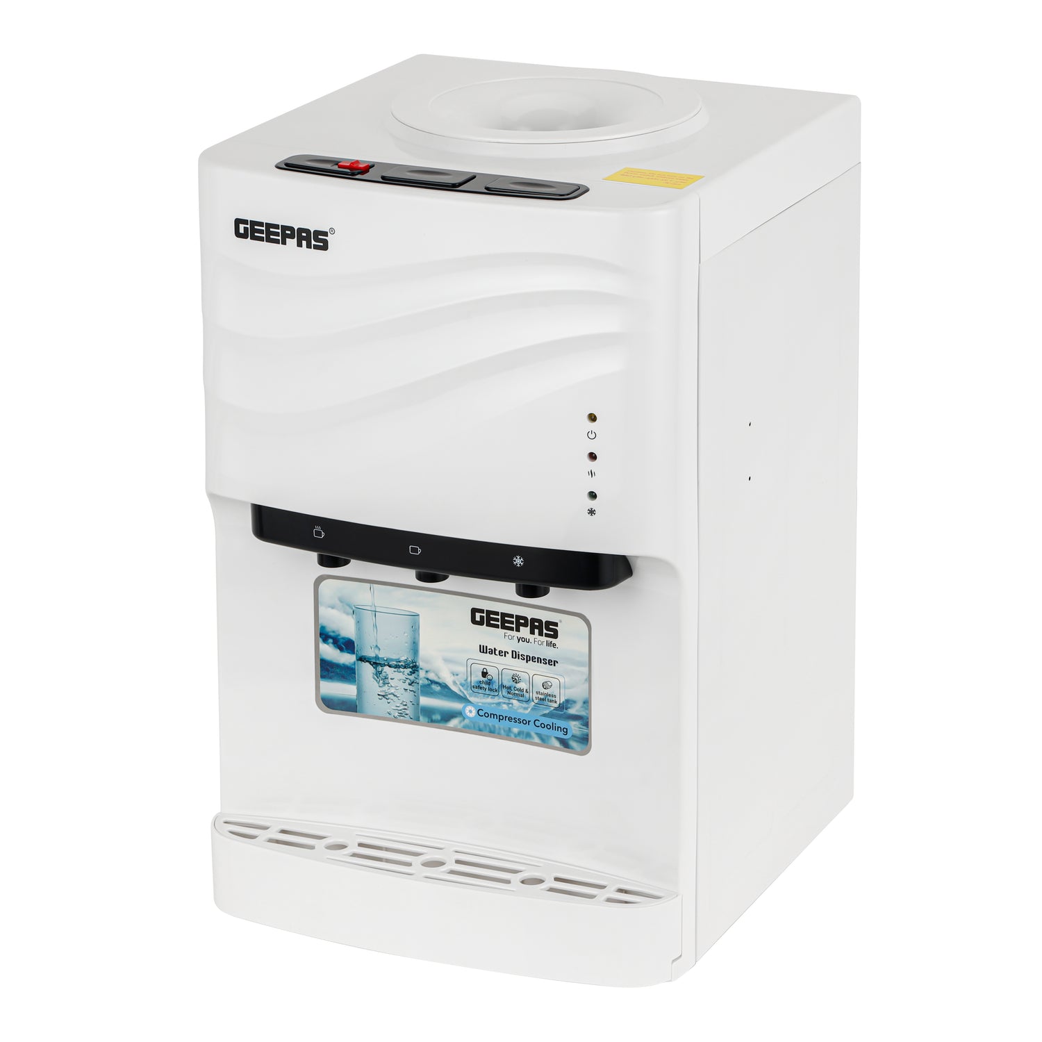 Enjoy safe, convenient, and refreshing hydration every day with the Geepas GWD8358 Water Dispenser. Designed for homes and offices, this reliable dispenser delivers hot, cold, and normal water instantly, making it perfect for drinking, tea, coffee, and daily kitchen needs. Built with a durable stainless steel water tank, the dispenser ensures hygienic water storage and long-lasting performance. Its hot water child safety button adds an extra layer of protection, preventing accidental burns and making it suitable for family use. Powered by an efficient compressor cooling system and eco-friendly refrigerant, the Geepas GWD8358N offers consistent cooling and heating performance while maintaining energy efficiency. With a compact yet sturdy design, it fits seamlessly into any indoor environment.