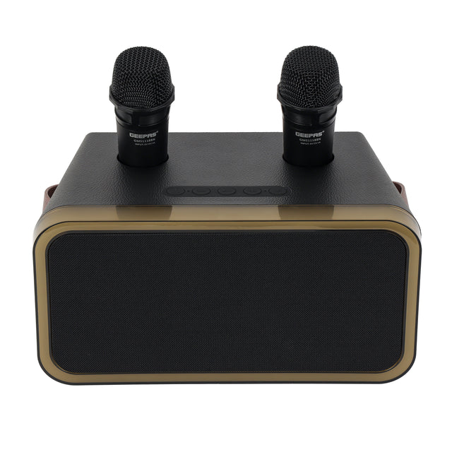 Geepas Karaoke Speaker with 2 Wireless Speaker- GMS11188/ USB Input, Bluetooth 5.1 Connectivity, Volume and Voice Adjustments and Power ON/OFF Functions/ Perfect for Indoor and Outdoor Party/ Black, 2 Years Warranty