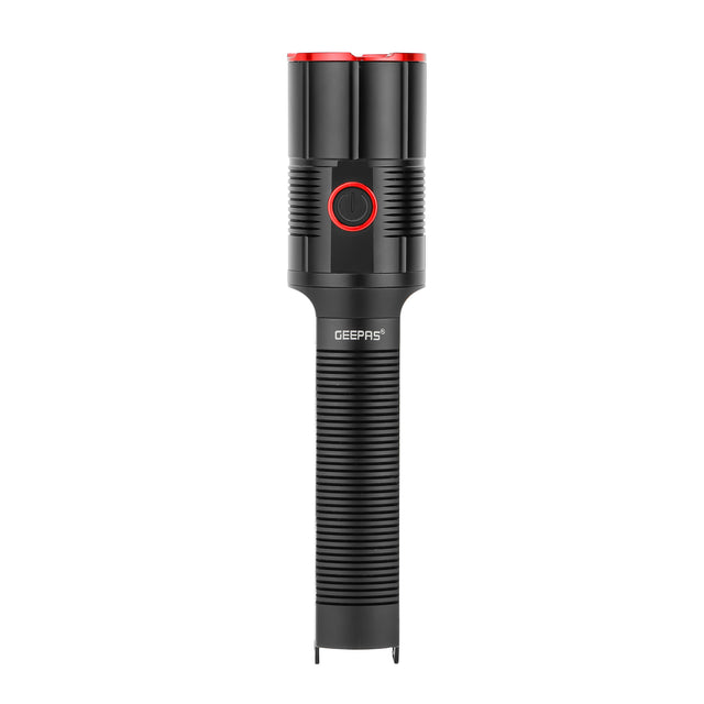 Experience unmatched brightness and reliability with the Geepas LED Flashlight featuring a powerful 80W high power LED producing up to 5000 lumens. Crafted from durable 6063 aluminum alloy, this flashlight is equipped with a 3.7V, 18650, 15000mAh rechargeable battery, offering up to 20 hours of continuous operation. It also doubles as a power bank for emergency device charging via its Type-C port. With multiple light modes (high, medium, low, flash, SOS) and IPX6 waterproof protection, it’s perfect for outdoor adventures, emergencies, and professional use.