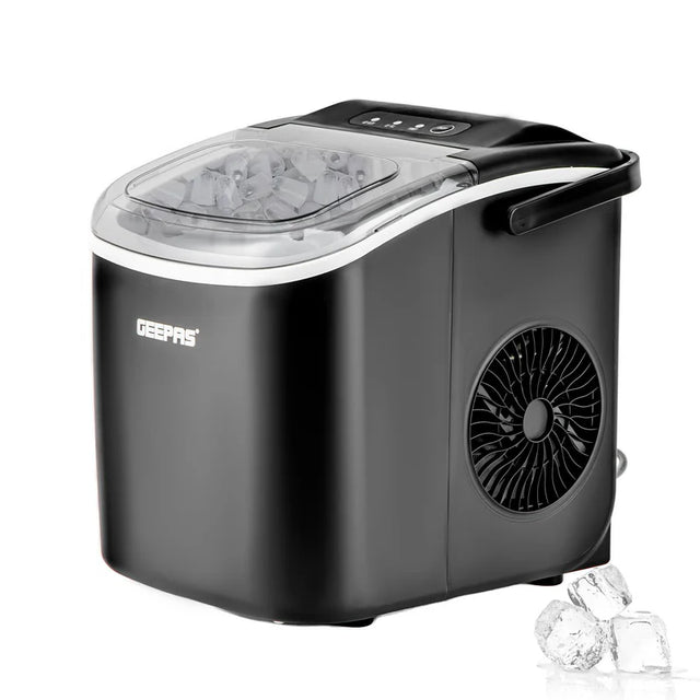 Geepas Portable Automatic Ice Maker GIM63053UK is the perfect solution for quick and easy ice making at home, offices, or parties. With a 1.2L water container and 600g ice storage capacity, this compact machine can produce up to 12kg of ice per day. It makes 9 ice bullets per cycle in just 7 minutes, ensuring you always have fresh ice on demand. The easy-to-use design includes a drain plug, removable ice bucket, and scoop for convenience. Compact and portable, it features eco-friendly compressor technology and durable stainless steel housing. Whether for chilled drinks, parties, or everyday use, this ice maker is a reliable and efficient addition to your kitchen or bar setup.