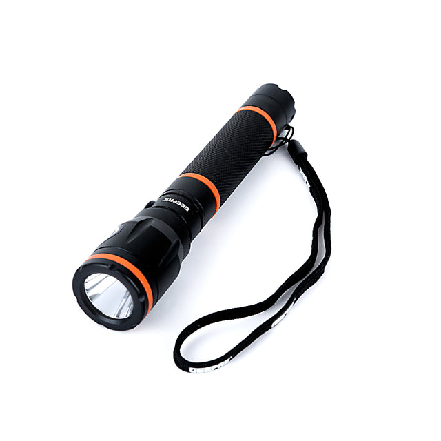 Illuminate your surroundings with the Geepas Waterproof LED Flashlight, designed for durability and reliability in any environment. Built with aircraft-grade aluminum alloy housing, this flashlight is both lightweight and strong, ensuring long-lasting performance. Equipped with a high-quality CREE LED light source, it delivers powerful brightness with a 1.5-hour working time on a single charge. Built with high-quality materials and advanced features, this flashlight is perfect for outdoor adventures, emergency preparedness, or everyday use. Offering high power, long-lasting battery life, and a lifetime warranty on its Cree LED, this flashlight ensures you have the light you need when you need it most. The strong and durable construction ensures that it can handle rough handling, drops, and even extreme weather conditions, making it perfect for outdoor enthusiasts, campers, and adventurers. With a long-lasting battery life, this flashlight offers up to 1.5 hours of continuous use on a full charge. Powered by a high-capacity Ni-Cd battery, this flashlight offers 800 mAh of power. The on-off switch mode ensures simple operation, while the adapter with a red-to-green indicator keeps you informed of charging progress. Designed to withstand tough conditions, this waterproof flashlight is perfect for outdoor adventures, emergencies, and professional use. The Cree LED provides superior performance and ensures that your flashlight will remain a trusted tool for years to come.