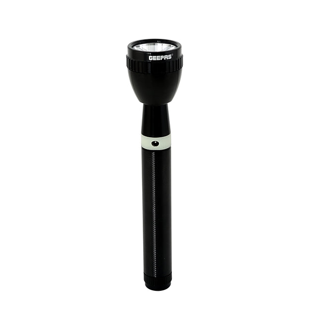 Geepas Rechargeable LED Flashlight | Hyper Bright Cool White Micro Chip LED Torch Light | Built-in 2000mAh Battery | 1800M Distance Range | Powerful Torch for Indoor & Outdoor Activities