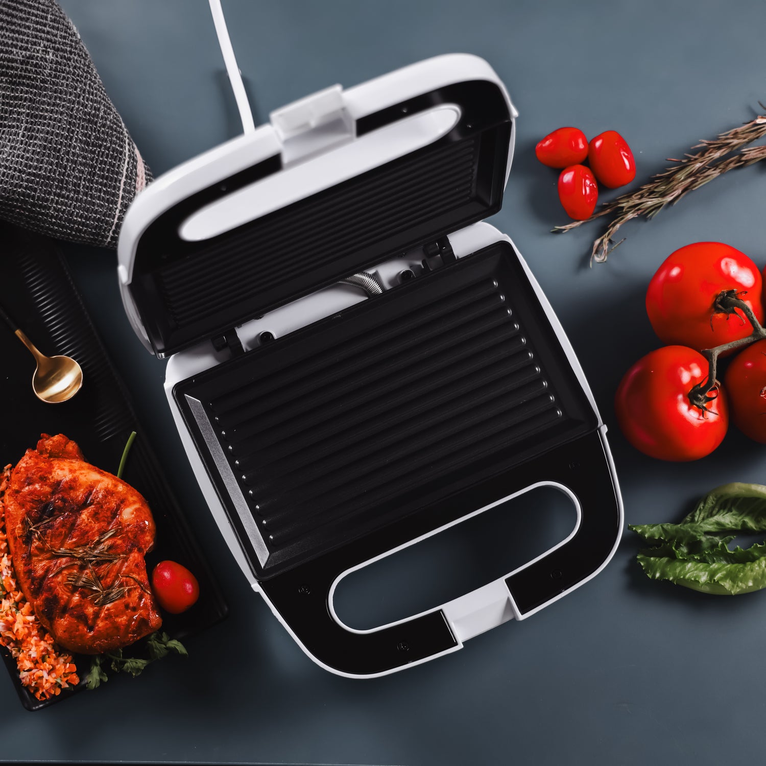 Geepas GGT686 Grill Maker | 750W Compact Electric Sandwich & Snack Maker with Non-Stick Cooking Plates| Power & Ready Indicator Lights| Easy to Clean| 2 Years Warranty