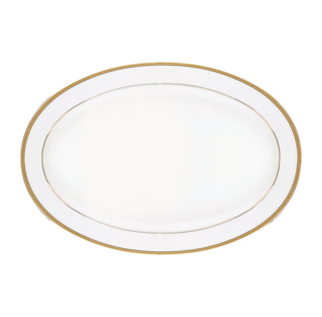 Premium Bone China Plates, 14" Oval Dinner Plate, RF10466 | Deep Plate with Elegant Golden Border | Ideal for Dinner, Lunch, Breakfast, Parties & More