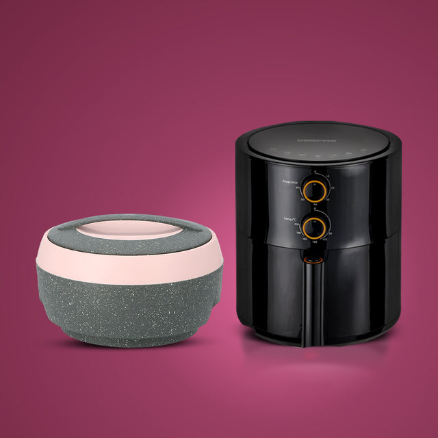 The Geepas & Royalford Premium Cook & Serve Combo is built for the modern home chef. Prepare delicious, family-sized meals using the healthy Air Fryer, then ensure they stay piping hot and ready to eat with the superior insulation of the Royalford Cosmos Casserole. This set offers the ultimate in cooking convenience and elegant serving.
