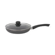 Royalford 24 CM Aluminum Fry Pan- RF11976| With Tempered Glass Lid, Strong Aluminum Body With Non-Stick Coating And Bakelite Handle| Compatible With Hot Plate, Halogen, Ceramic And Gas Stovetops| Perfect For Frying, Sauting, Tempering| Black