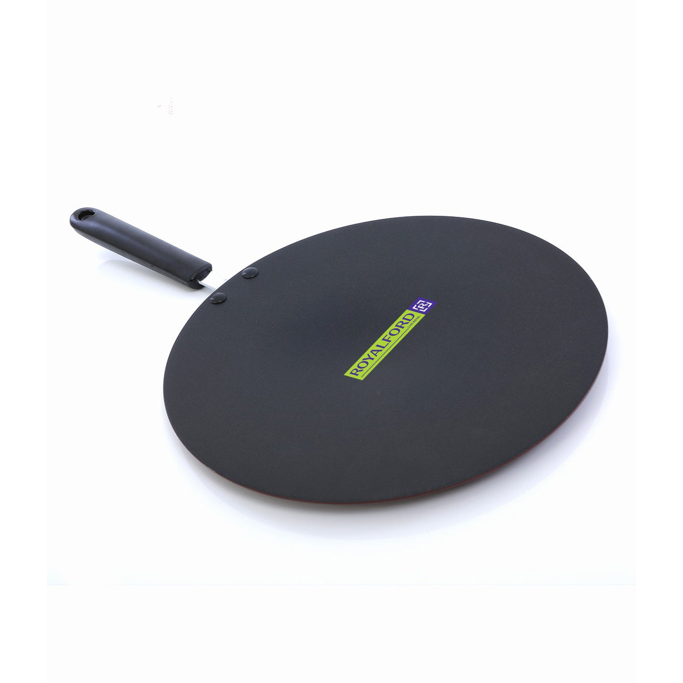 Bring efficiency and ease to everyday cooking with the Royalford 30CM Non-Stick Tawa (RF2013-T30) — the perfect cookware for preparing soft rotis, crispy dosas, chapatis, parathas, omelettes and much more. Designed for Indian kitchens, this tawa combines long-lasting non-stick performance, fast heating and safe handling to deliver consistently delicious results. The cooking surface features a 3-Layer Advanced Non-Stick Coating that allows you to cook with minimal oil for a healthier lifestyle while ensuring effortless food release and quick cleanup. Built with 2.5MM premium-grade aluminium, the tawa heats rapidly and retains heat effectively for even, consistent cooking. A Spin Bottom Base helps distribute heat uniformly across the surface, preventing hotspots and ensuring your food cooks perfectly from edge to center. For safety and comfort, the tawa is equipped with a Heavy-Duty, Heat-Resistant Bakelite Handle that stays cool to the touch and offers a strong, ergonomic grip.