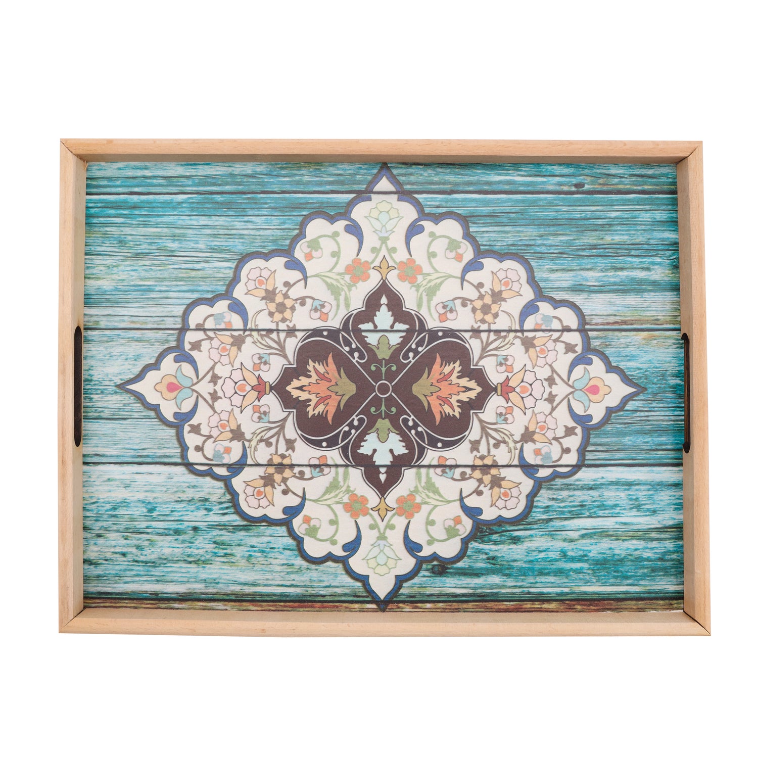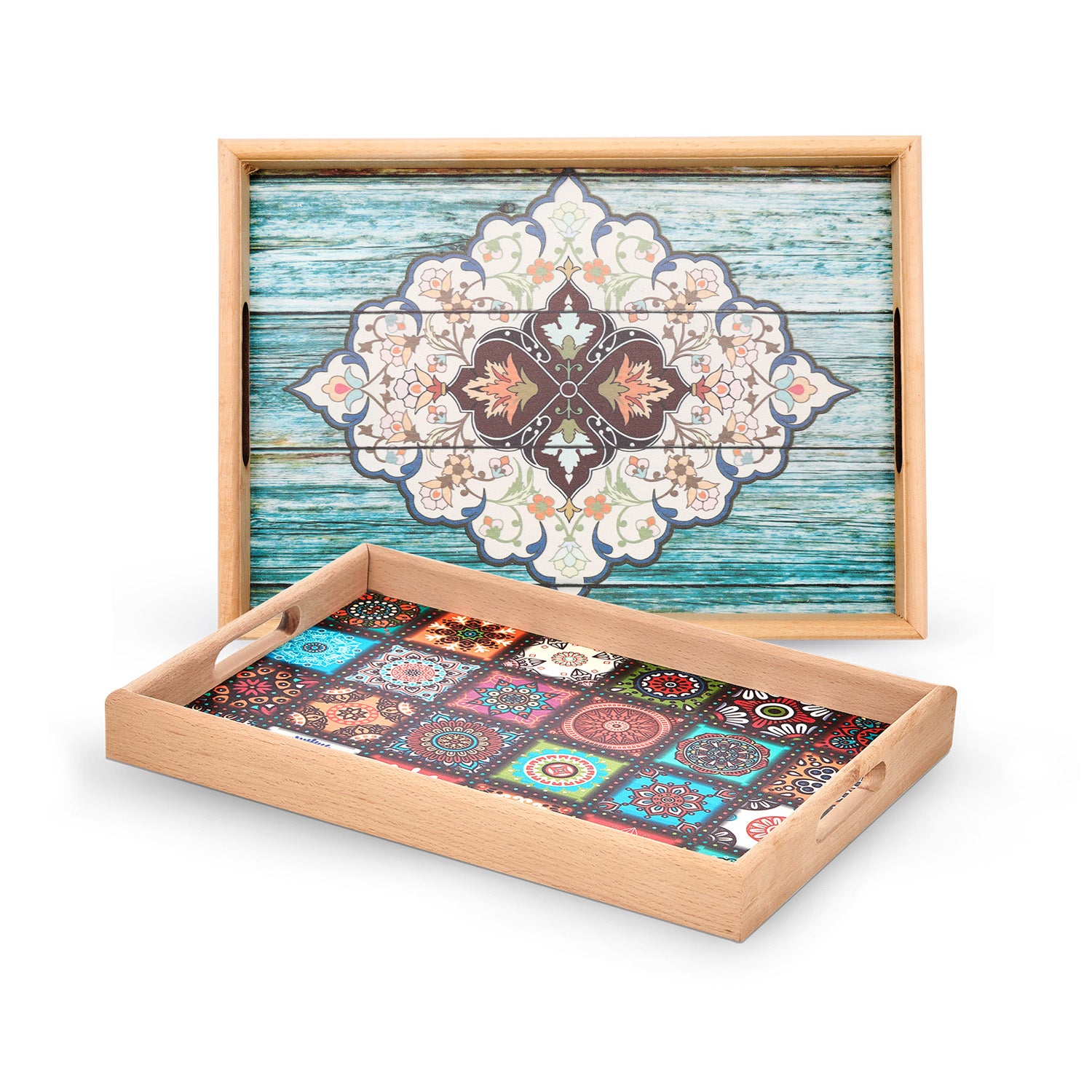 From breakfast in bed to evening tea, this wooden tray is versatile and chic, enchanting any space. The Royalford offers you an appealing rectangular-shaped wooden tray to serve anything from snacks to beverages in style. It is a durable and stylish tray for all your needs. The tray is made of high-quality, strong, long-lasting, hygienic, odorless, and safe material and is specially designed for everyday use. The rectangular tray is adaptable and can be used for a variety of purposes. The tray features a contrasting tile printed design to leave your guests impressed. It can be used for serving food, drinks, etc., and has enough space to serve whatever you want in one go. The tray is also perfect at home on a nightstand, countertop, or desk as a catchall for all your essentials. It is ideal for placing vases, books, candles, keys, sunglasses, and other precious things. This is a staple for any clutter-free surface and keeps it classy. The elegant and sleek design effortlessly blends in with your home dcor. The tray will add the right amount of color and texture to your hosting space. and is certain to impress your guests. The tray can be used at home, in restaurants, or on any occasion. Made with top-quality material, this tray is durable and has a longer shelf life. The lightweight tray has ergonomically designed handles to ensure a comfortable and firm grip. This tray is break-resistant and is a safe replacement for ceramic and glass trays. The tray looks both elegant and chic and comes in two different prints to choose from, which will help you to create your own trend statement. It is also easy to clean. The wooden tray measures 42 x 30 cm in size and weighs 0.600 kg. The tray has a smooth and rounded edge, making it convenient to carry around.
