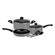 With a stylish grey heat-resistant exterior, an aluminum body, and a durable 3-layer nonstick interior, this cookware is appropriate for happy homes. The cookware set is PFOA-free, making it safe for everyday use.