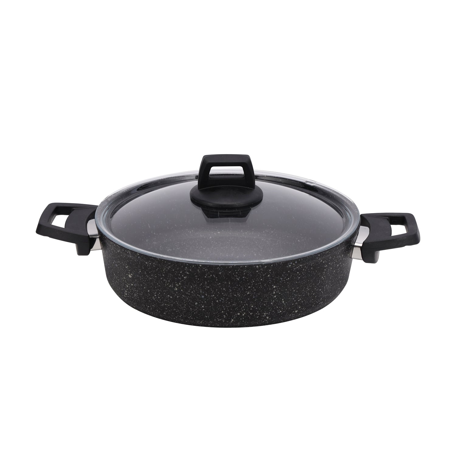 Upgrade your everyday cooking with the Royalford Gabbro Granite Coated Cookware Set – 7 Pieces (RF10980), designed to combine durability, performance, and modern style. Crafted with a strong aluminium body and a premium granite non-stick coating, this cookware set ensures healthy cooking with minimal oil while delivering excellent heat distribution. The set includes casseroles with lids, a shallow pot with lid, and a frypan, making it ideal for preparing a wide variety of dishes—from curries and gravies to frying and sautéing. The tempered glass lids allow easy monitoring while cooking, and the heavy-duty Bakelite handles provide a secure, heat-resistant grip. Perfect for daily home use, this cookware set is PTFE & PFOA free, ensuring safe and toxin-free cooking for your family.