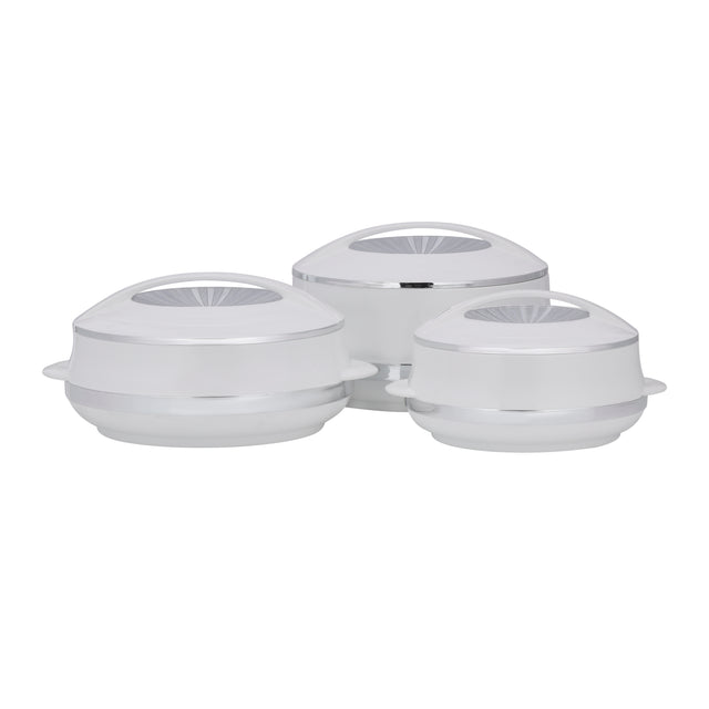 Keep your meals warm, fresh, and ready to serve with the Royalford RF11149 Elite Gold Insulated Casserole Set. Designed with a stunning modern finish and premium-quality materials, this 3-piece set is ideal for daily use, family gatherings, and festive occasions. Each casserole is built with a premium PP outer body and a stainless-steel inner casing, ensuring maximum insulation while keeping food hygienic and flavorful. The Super PU insulation maintains the temperature of your dishes for hours, making it perfect for chapati, biryani, curry, rice, and more. The firm twist lock ensures secure sealing, preventing heat loss and keeping food safe during transport. With its elegant and unique design, the Elite Gold set adds a touch of sophistication to any dining table. Available in three convenient sizes—1600ml, 2500ml, and 3500ml—this set offers the perfect serving solution for every household.