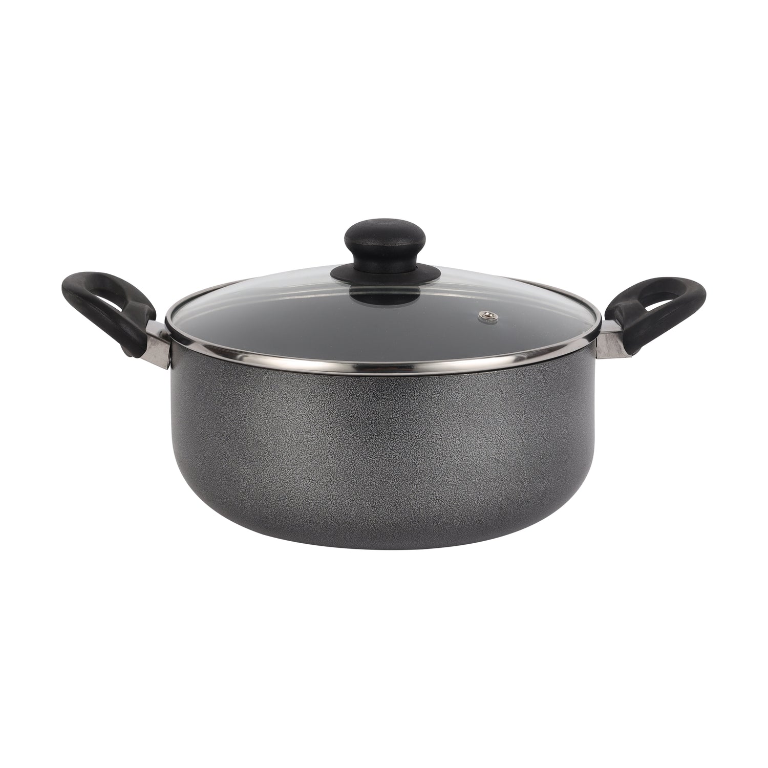 Upgrade your kitchen with the Royalford RF11953 7 Pcs Non-Stick Cookware Set, crafted from durable press aluminium for fast and even heat distribution. This versatile set is ideal for daily cooking needs and includes a casserole, saucepan, frypan, and essential nylon utensils. The 3-layer non-stick coated interior ensures healthy low-oil cooking and effortless food release, while the tempered glass lids with steel frame allow safe cooking visibility. Designed with heavy-duty bakelite handles, the cookware offers a secure and comfortable grip. Compatible with hot plate, halogen, ceramic, and gas stoves, this cookware set is a perfect blend of performance, safety, and elegant design.