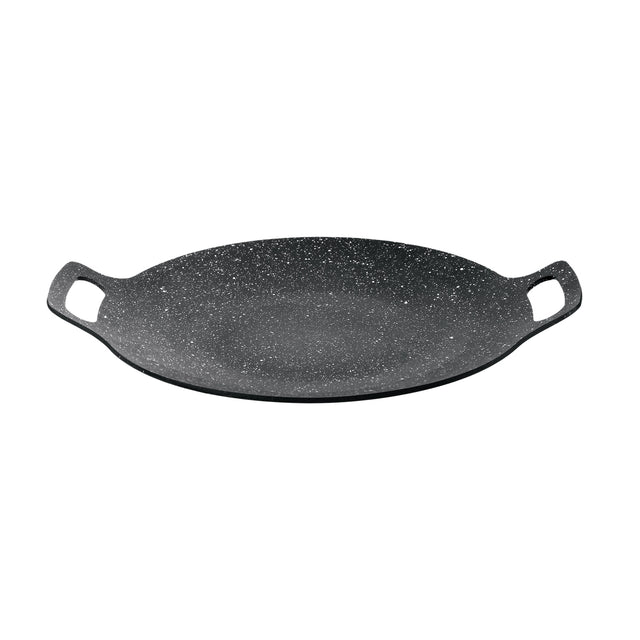 Cook authentic rotis, dosas, parathas, pancakes, and more with the Royalford RF12507 Deep Tawa. Crafted from premium-quality aluminium and finished with a highly durable granite-coated interior, this 34cm deep tawa ensures even heat distribution and effortless food release. The extra-strong construction with 2.5mm thickness delivers consistent performance, while the dual side handles provide safe and comfortable handling. Designed for modern kitchens, it is induction compatible, dishwasher safe, and PFOA & PTFE free, making it a healthy and versatile choice for everyday cooking.