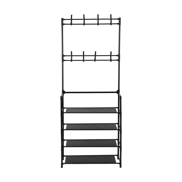 Organize your footwear and accessories efficiently with the Royalford RF12781 Portable Shoe Rack. Designed for modern homes, this space-saving floor-standing organizer features 4 spacious shelves and 8 sturdy hooks, making it ideal for shoes, bags, umbrellas, scarves, and other daily essentials. Constructed with durable iron rods and strong plastic connectors, this rack provides enhanced stability while maintaining a lightweight and portable design. The vertical structure maximizes storage without occupying too much floor space, making it perfect for entryways, bedrooms, dorms, or closets. With easy, tool-free installation, you can assemble the rack in minutes and keep your living space neat and clutter-free.
