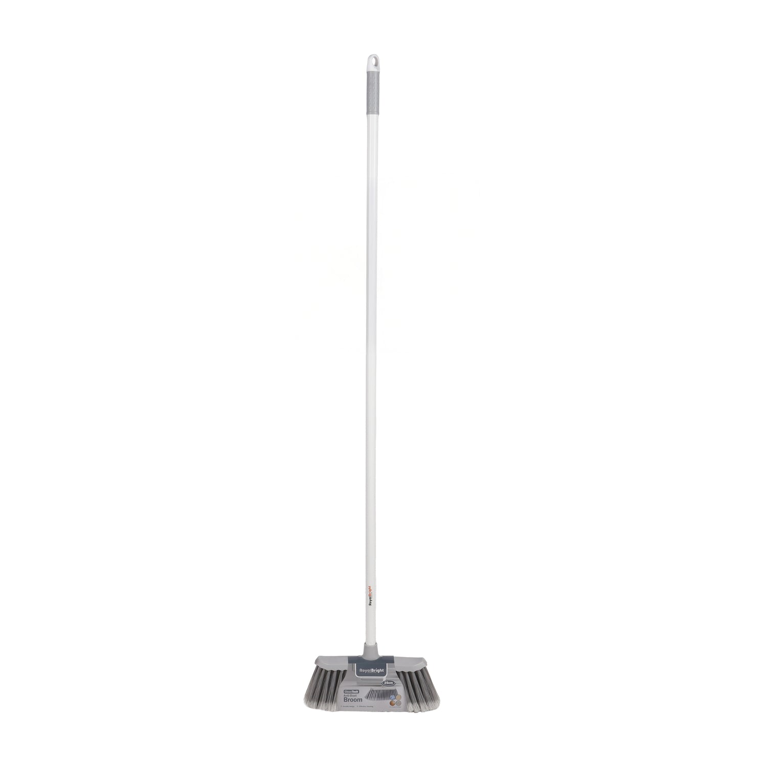 Keep your home spotless with the Royalford RF12852 RoyalBright CleanTech Anti-Dust Broom. Designed for efficient cleaning, this broom features a 25cm wide sweeping head with durable bristles that easily capture dust, dirt, and debris from different surfaces. The broom is equipped with a strong iron handle and high-quality plastic head, ensuring long-lasting durability and reliable performance for everyday cleaning. With its 120cm long handle, it allows comfortable sweeping without bending, making it ideal for quick and efficient household cleaning. Its anti-dust bristle design helps trap fine particles and dirt effectively, leaving floors cleaner with minimal effort. The broom works well on tiles, marble, wooden floors, and other hard surfaces, making it a versatile cleaning tool for homes and workplaces. Beyond floor cleaning, the Royalford Anti-Dust Broom is also suitable for removing cobwebs, dust from walls, ceilings, and windows, making it a practical multipurpose cleaning solution. Lightweight yet sturdy, it delivers professional-quality cleaning for daily household use.