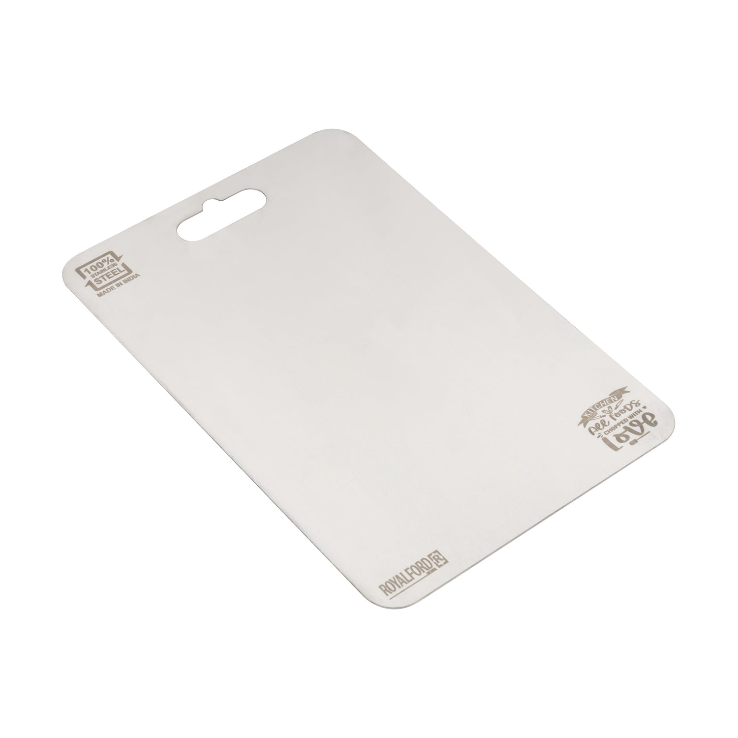 pgrade your kitchen essentials with the Royalford RF12901 Stainless Steel Chopping Board, designed for durability, hygiene, and long-lasting performance. Crafted from high-quality, food-grade stainless steel, this cutting board provides a clean and sanitary surface for all your food preparation needs. With a practical size of 35.5 x 25 cm, it offers ample space for chopping vegetables, slicing fruits, cutting meat, and dicing ingredients with ease. Its smooth stainless steel surface is resistant to scratches, cracks, stains, and fading, ensuring reliable use even with frequent daily cooking. Easy to clean and maintain, this BPA-free chopping board prevents odor absorption and bacterial buildup, making it a safe and hygienic choice for modern kitchens. The compact design allows convenient storage, while its sturdy construction ensures stability during use. Perfect for home kitchens, restaurants, and professional cooking environments.