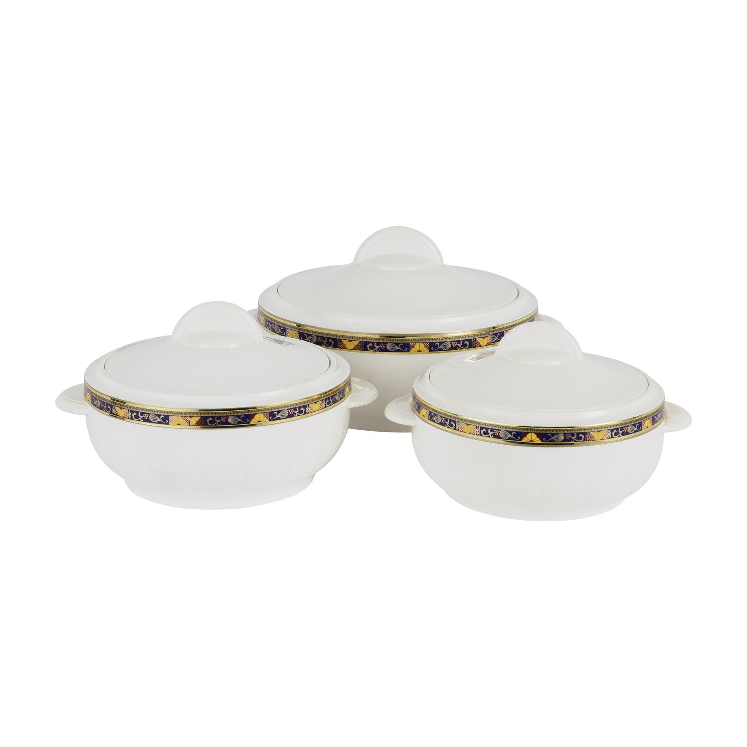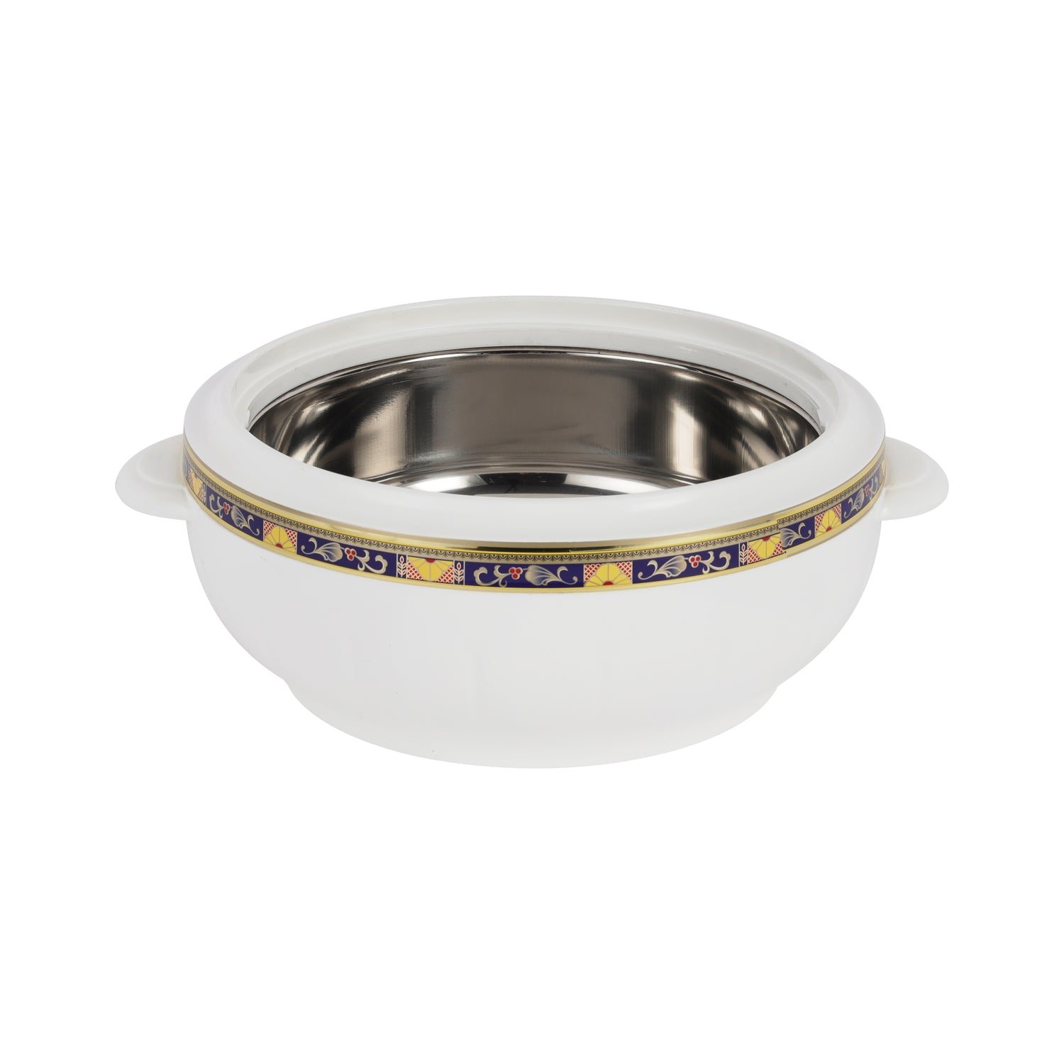 Enjoy fresh and perfectly warm meals anytime with the Royalford RF1643 Classic Casserole Set. Designed to retain temperature for extended periods, this highly insulated casserole keeps food hot or cold without losing freshness, texture or taste. Whether serving biryani, curry, rice, chapati, or salads, this set ensures every dish stays just the way you prepared it. Made from premium-grade stainless steel inside and outside, the casserole guarantees excellent durability, hygiene and long-term use. The airtight stainless steel lid locks in heat, moisture and aroma while preventing spills during handling and travel. With its elegant white finish and gold detailing, the Deluxe model brings a touch of sophistication to any dining table. Ideal for home kitchens, dinner gatherings, potlucks, picnics and special occasions, the Royalford RF1643 Casserole Set combines performance, design and convenience to create an effortless food-serving experience.
