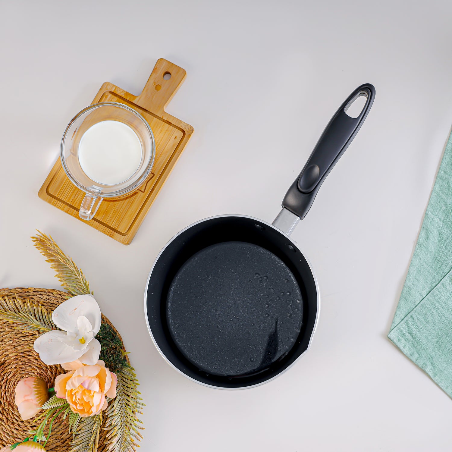 The Royalford Aluminium Milk Pan is the ideal solution for safe, quick, and mess-free boiling of milk or preparing small portions of soups, sauces, and beverages. Crafted from high-quality aluminium with a durable 2-layer construction, this pan ensures fast and even heat distribution for consistent cooking results. Its premium non-stick coating prevents milk from burning or sticking to the surface, making both cooking and cleanup effortless. The heat-resistant exterior and ergonomic heavy-duty handle provide a comfortable grip and enhance safety during use. This milk pan is compatible with multiple cooking surfaces including gas, ceramic, halogen, and hot plates, offering versatile everyday use. The pan is PFOA-free, ensuring healthy and toxin-free cooking for your family.